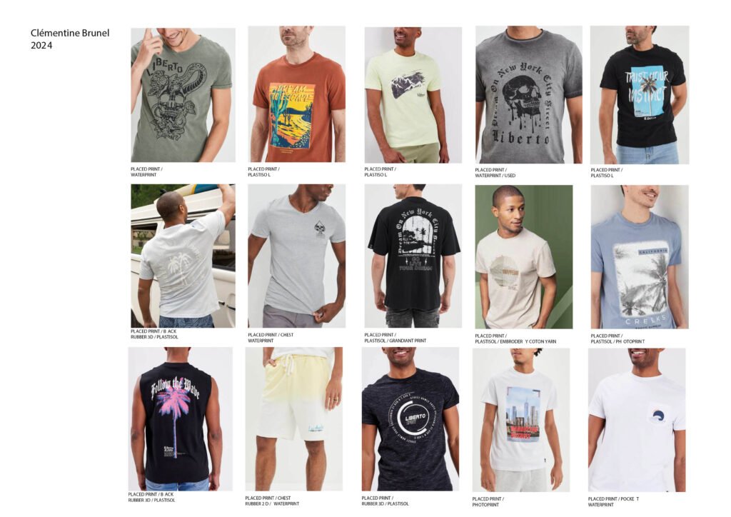 En tant que graphiste textile pour la collection homme de La Halle, je conçois des motifs et visuels destinés à être imprimés sur les vêtements. Mon travail allie tendances actuelles, identité de marque et contraintes techniques du textile.