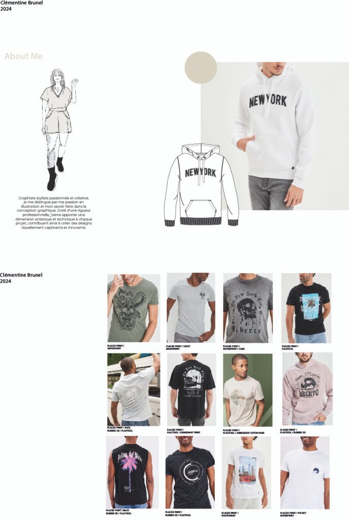 Je développe des visuels exclusifs (all-over, placements, typographies, etc.) en collaboration avec les stylistes et chefs de produit, pour proposer des collections créatives, cohérentes et commerciales. De la recherche graphique à la préparation des fichiers techniques, je veille à la qualité visuelle et à la faisabilité de chaque création.